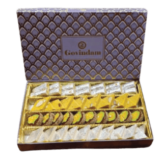 Sweet Box 800g – Moong, Mysore Pak, Nariyal Burfi & Makhmali Laddu Box